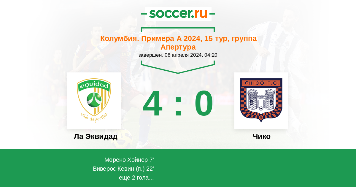 Колумбия. Примера А 24.03.2023 Ла Эквидад Логотип футбольный клуб Ла Эквидад (Богота) 2:2 Логотип футбольный клуб Чико (Тунха) Чико
