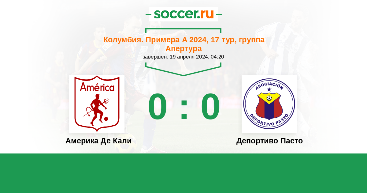 Колумбия. Примера А 31.05.2017 Америка Де Кали Логотип футбольный клуб Америка Де Кали 0:0 Логотип футбольный клуб Депортиво Пасто Депортиво Пасто