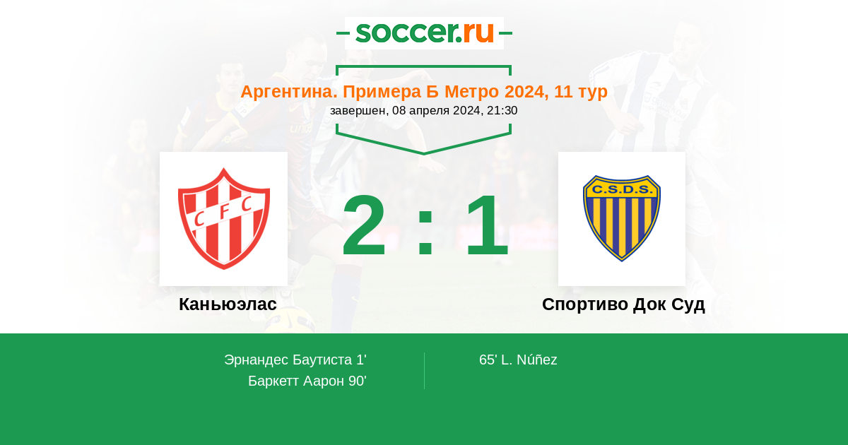 Аргентина. Примера Б Метро 24.09.2022 Каньюэлас Логотип футбольный клуб Каньюэлас 2:0 Логотип футбольный клуб Спортиво Док Суд (Буэнос-Айрес) Спортиво Док Суд