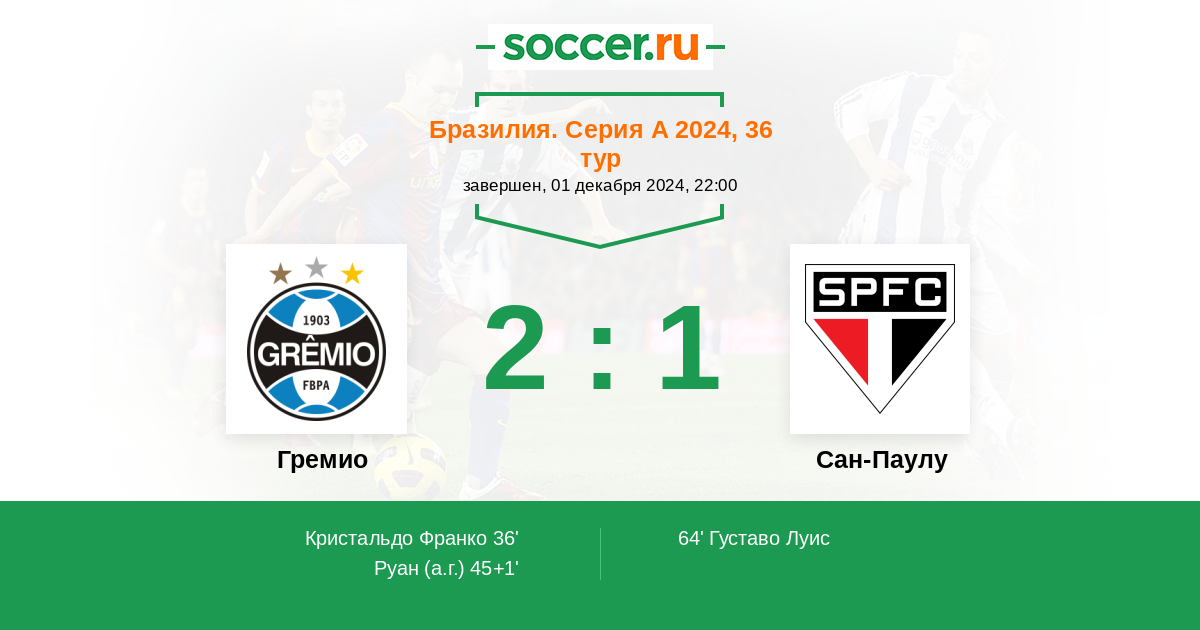 Бразилия. Серия А 03.12.2021 Гремио Логотип футбольный клуб Гремио (Порту-Алегри) 3:0 Логотип футбольный клуб Сан-Паулу Сан-Паулу