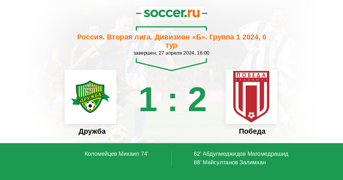 Россия. Вторая лига. Дивизион «Б». Группа 1 3 2 1 0