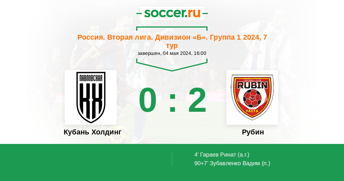 Кубань Холдинг 2:6 0:1 2:5
