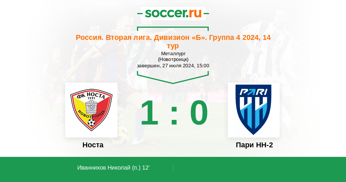 Носта 1:2 0:0 1:2