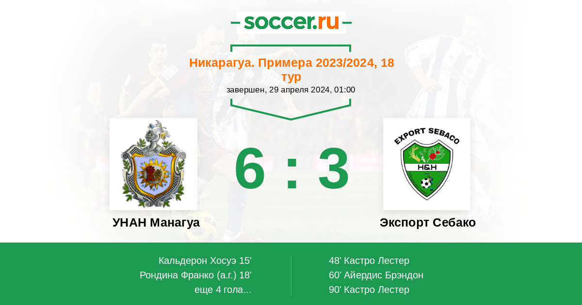 Никарагуа. Примера 06.04.2023 Экспорт Себако Логотип футбольный клуб Экспорт Себако 1:2 Логотип футбольный клуб УНАН Манагуа УНАН Манагуа