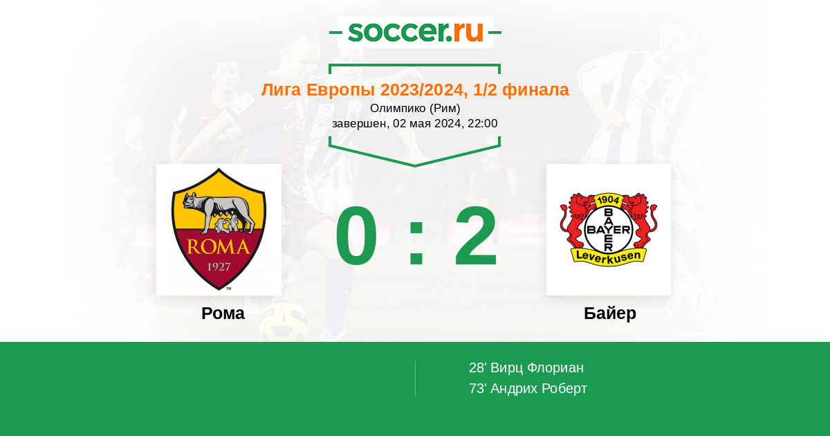 те5перь команда Хаби Алонсо продолжает борьбу еще за 2 трофея - Лигу Европы и Кубок Германии. Рома уже обыгрывала Байер в прошлом розыгрыше, причем на этой же стадии. Возьмут ли немцы реванш через год или все же повторение - мать учения?