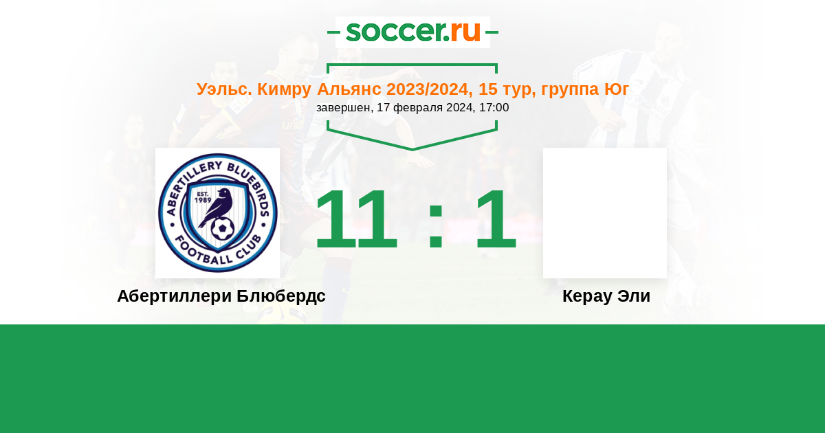 Абертиллери Блюбердс 4:11 0:0 4:11
