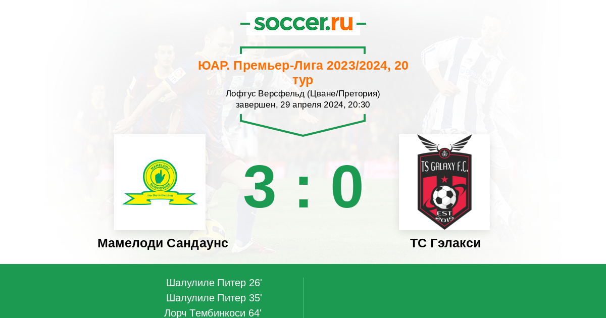 Мамелоди Сандаунс 17:5 10:2 7:3