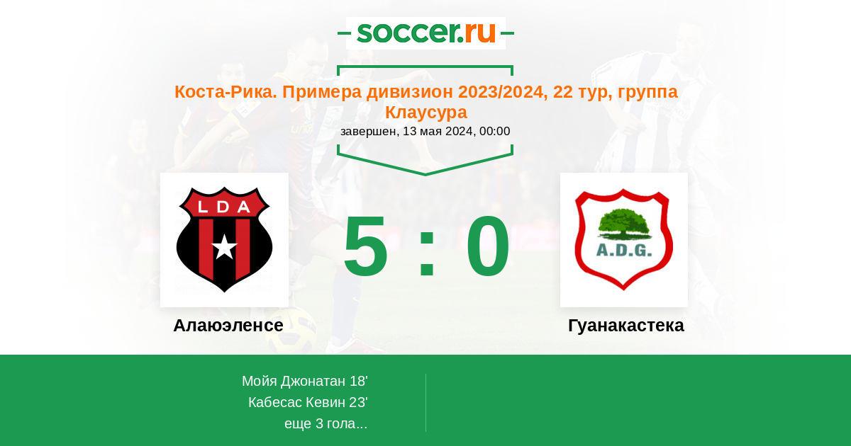 Коста-Рика. Примера дивизион 17.04.2022 Гуанакастека Логотип футбольный клуб Гуанакастека (Никойя) 0:3 Логотип футбольный клуб Алаюэленсе (Алаюэла) Алаюэленсе