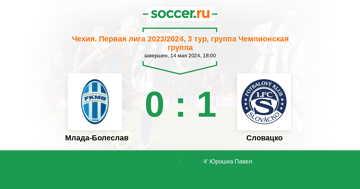 Чехия. Кубок 10.04.2013 Словацко Логотип футбольный клуб Словацко (Угерске-Градиште) 0:1 Логотип футбольный клуб Млада-Болеслав Млада-Болеслав