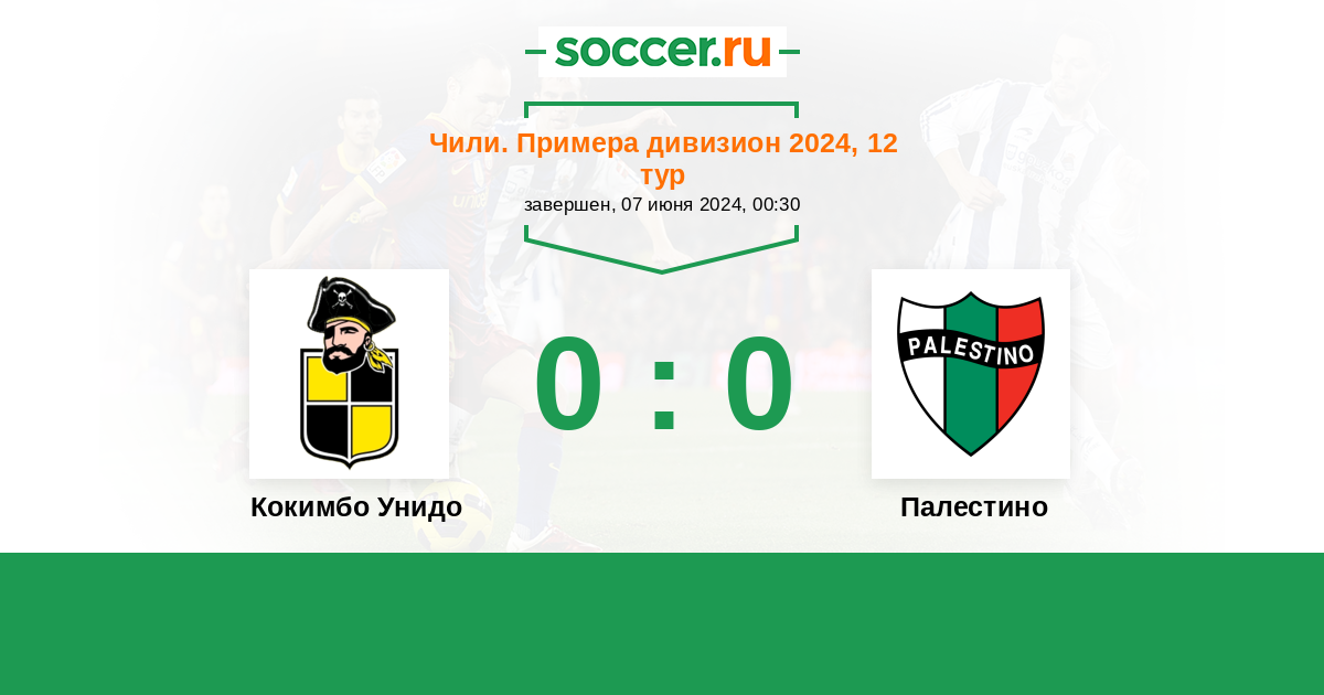 Чили. Примера дивизион 06.10.2024 Палестино Логотип футбольный клуб Палестино (Сантьяго) 2:0 Логотип футбольный клуб Кокимбо Унидо Кокимбо Унидо