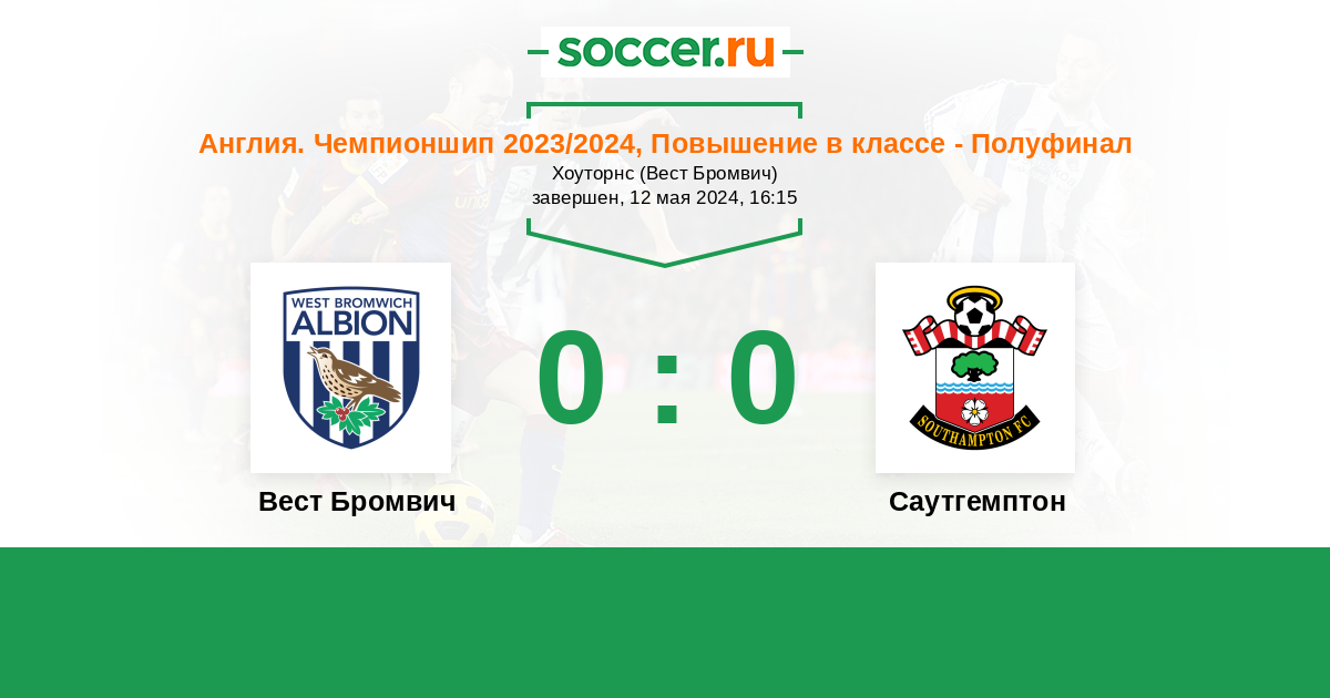 Англия. Чемпионшип 17.05.2024 Саутгемптон Логотип футбольный клуб Саутгемптон 3:1 Логотип футбольный клуб Вест Бромвич Вест Бромвич