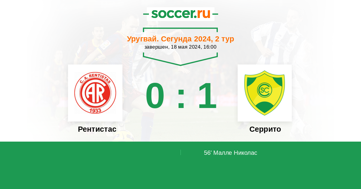Уругвай. Сегунда 11.05.2019 Рентистас Логотип футбольный клуб Рентистас (Монтевидео) 1:0 Логотип футбольный клуб Серрито (Монтевидео) Серрито
