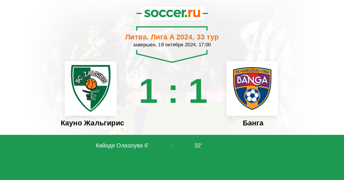 Литва. Лига А 24.04.2024 Кауно Жальгирис Логотип футбольный клуб Кауно Жальгирис (Каунас) 0:3 Логотип футбольный клуб Банга (Гаргждай) Банга
