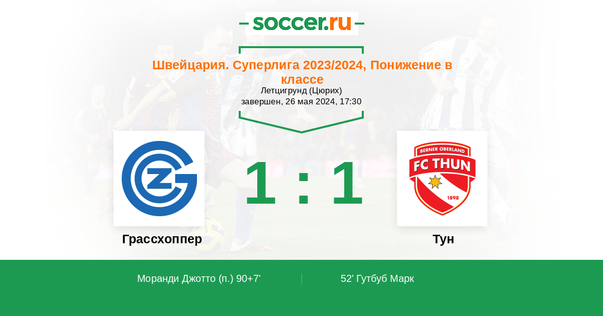 Швейцария. Суперлига 31.05.2024 Тун Логотип футбольный клуб Тун 1:2 Логотип футбольный клуб Грассхоппер (Цюрих) Грассхоппер