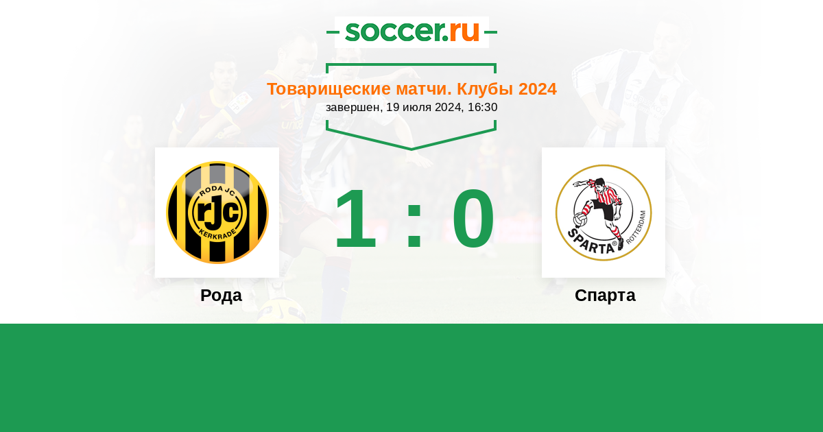 Нидерланды. Первый дивизион 19.10.2018 Рода Логотип футбольный клуб Рода (Керкраде) 1:1 Логотип футбольный клуб Спарта (Роттердам) Спарта