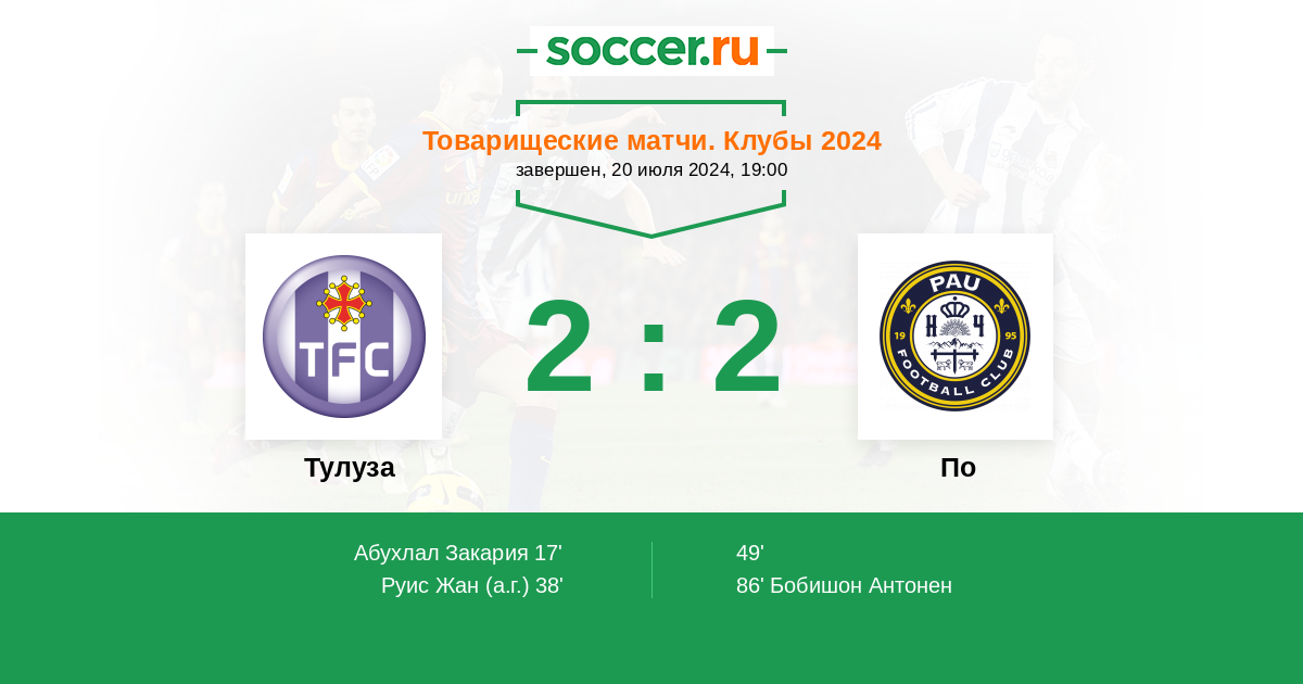 Товарищеские матчи. Клубы 12.07.2025 Тулуза Логотип футбольный клуб Тулуза 0:0 Логотип футбольный клуб По (Бизано) По
