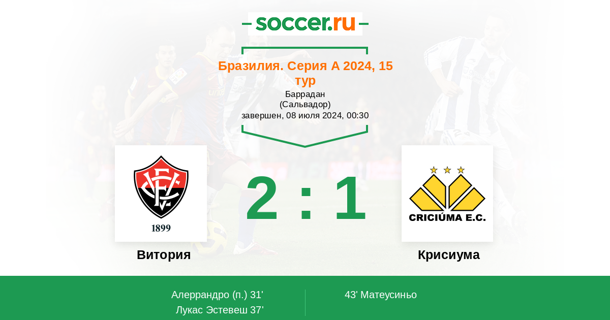 Бразилия. Серия В 02.06.2015 Витория Логотип футбольный клуб Витория (Сальвадор) 2:1 Логотип футбольный клуб Крисиума Крисиума