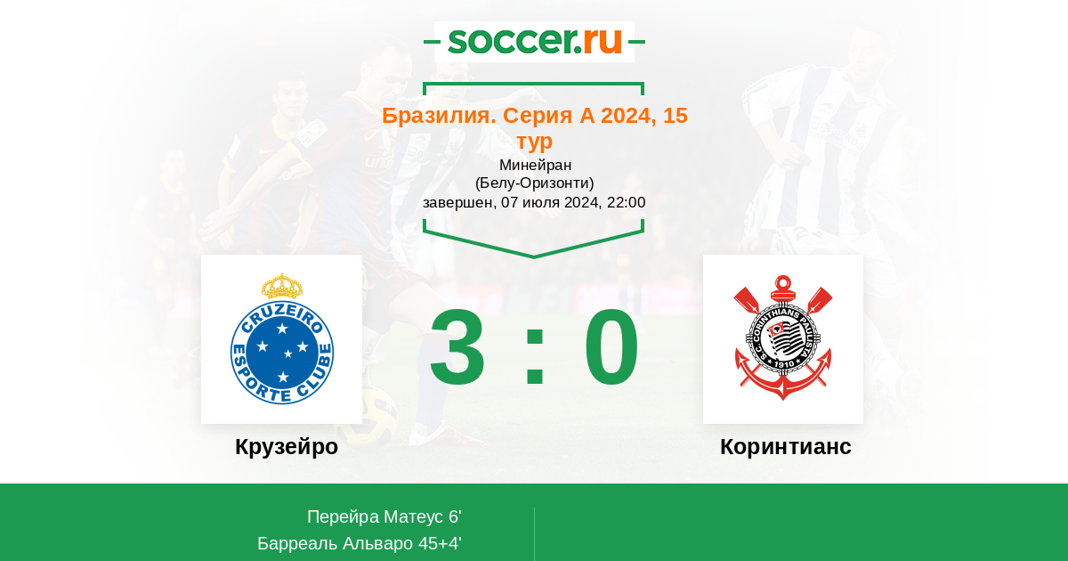 Бразилия. Серия А 20.11.2024 Коринтианс Логотип футбольный клуб Коринтианс (Сан-Паулу) 2:1 Логотип футбольный клуб Крузейро (Белу-Оризонти) Крузейро