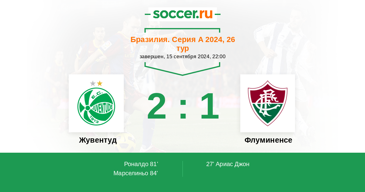Бразилия. Серия А 02.06.2024 Флуминенсе Логотип футбольный клуб Флуминенсе (Рио-де-Жанейро) 1:1 Логотип футбольный клуб Жувентуд (Кашиас-ду-Сул) Жувентуд