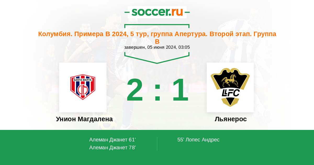 Колумбия. Примера А 04.02.2025 Льянерос Логотип футбольный клуб Льянерос (Вильявисенсио) 2:0 Логотип футбольный клуб Унион Магдалена (Санта Марта) Унион Магдалена