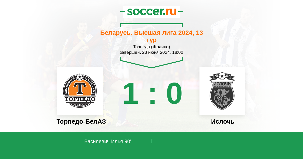 Беларусь. Высшая лига 10.06.2016 Торпедо-БелАЗ Логотип футбольный клуб Торпедо-БелАЗ (Жодино) 1:1 Логотип футбольный клуб Ислочь (Минск) Ислочь