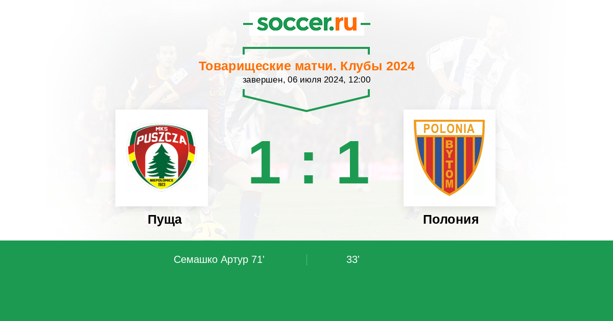 Пуща 1:1 0:0 1:1