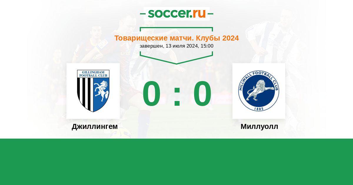 Товарищеские матчи. Клубы 15.07.2023 Джиллингем Логотип футбольный клуб Джиллингем 0:2 Логотип футбольный клуб Миллуолл (Лондон) Миллуолл