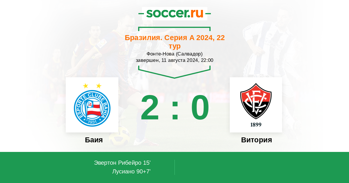 Бразилия. Серия А 22.07.2018 Баия Логотип футбольный клуб Баия (Салвадор) 4:1 Логотип футбольный клуб Витория (Сальвадор) Витория