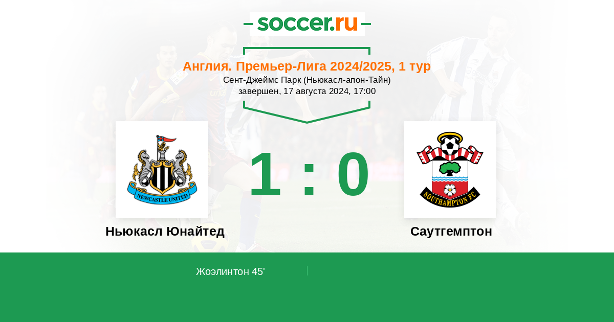 Англия. Премьер-Лига 25.01.2025 Саутгемптон Логотип футбольный клуб Саутгемптон 1:3 Логотип футбольный клуб Ньюкасл Юнайтед (Ньюкасл-апон-Тайн) Ньюкасл Юнайтед