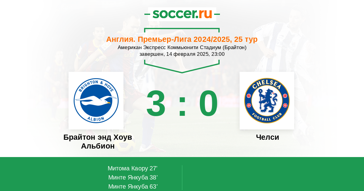 Англия. Премьер-Лига 27.09.2025 Челси Логотип футбольный клуб Челси (Лондон) 1:3 Логотип футбольный клуб Брайтон энд Хоув Альбион Брайтон энд Хоув Альбион