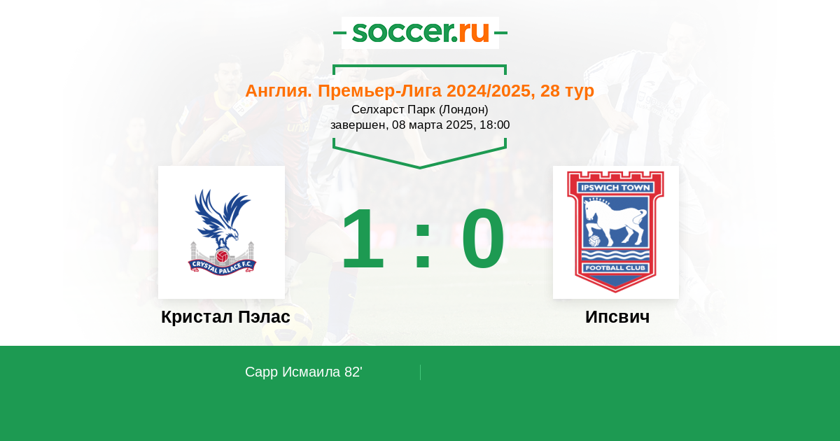 Англия. Премьер-Лига 03.12.2024 Ипсвич Логотип футбольный клуб Ипсвич 0:1 Логотип футбольный клуб Кристал Пэлас (Лондон) Кристал Пэлас