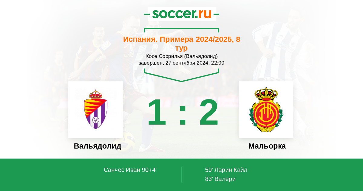 Испания. Примера 07.01.2023 Мальорка Логотип футбольный клуб Мальорка (Пальма-де-Мальорка) 1:0 Логотип футбольный клуб Вальядолид Вальядолид
