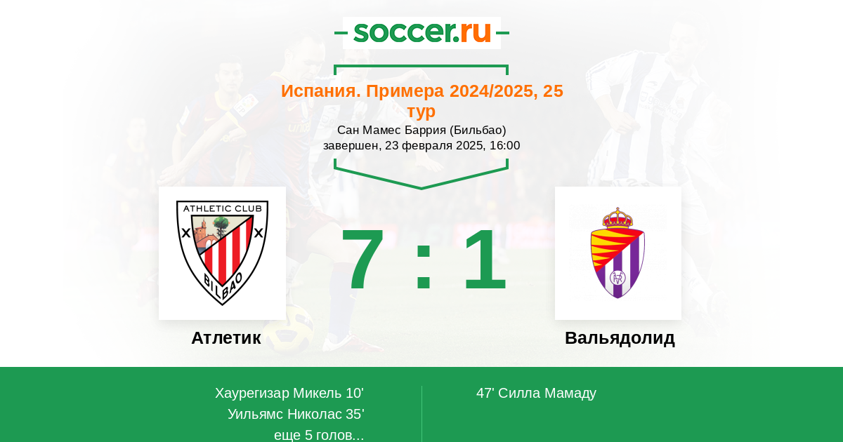 Испания. Примера 08.11.2022 Атлетик Логотип футбольный клуб Атлетик (Бильбао) 3:0 Логотип футбольный клуб Вальядолид Вальядолид