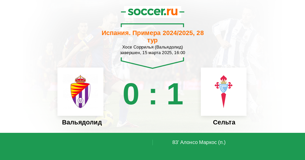 Испания. Примера 26.02.2023 Сельта Логотип футбольный клуб Сельта (Виго) 3:0 Логотип футбольный клуб Вальядолид Вальядолид
