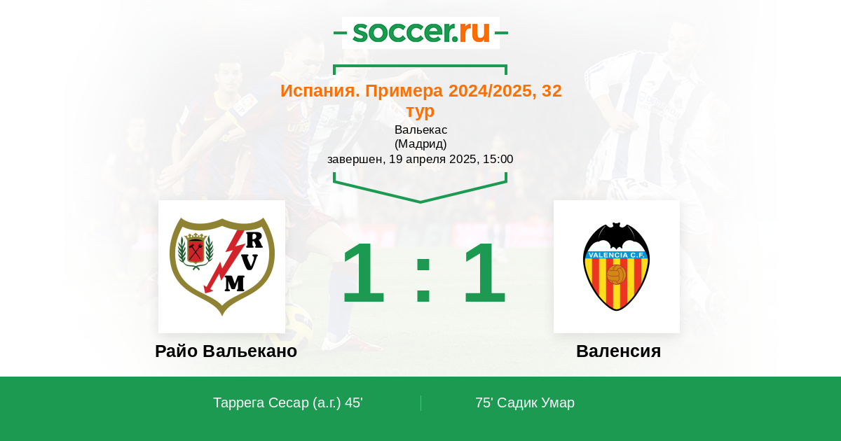 Испания. Примера 11.04.2022 Райо Вальекано Логотип футбольный клуб Райо Вальекано (Мадрид) 1:1 Логотип футбольный клуб Валенсия Валенсия