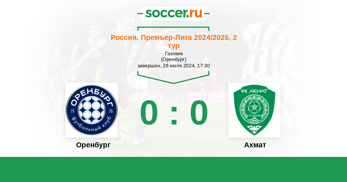 Россия. Премьер-Лига 05.08.2019 Ахмат Логотип футбольный клуб Ахмат (Грозный) 2:1 Логотип футбольный клуб Оренбург Оренбург
