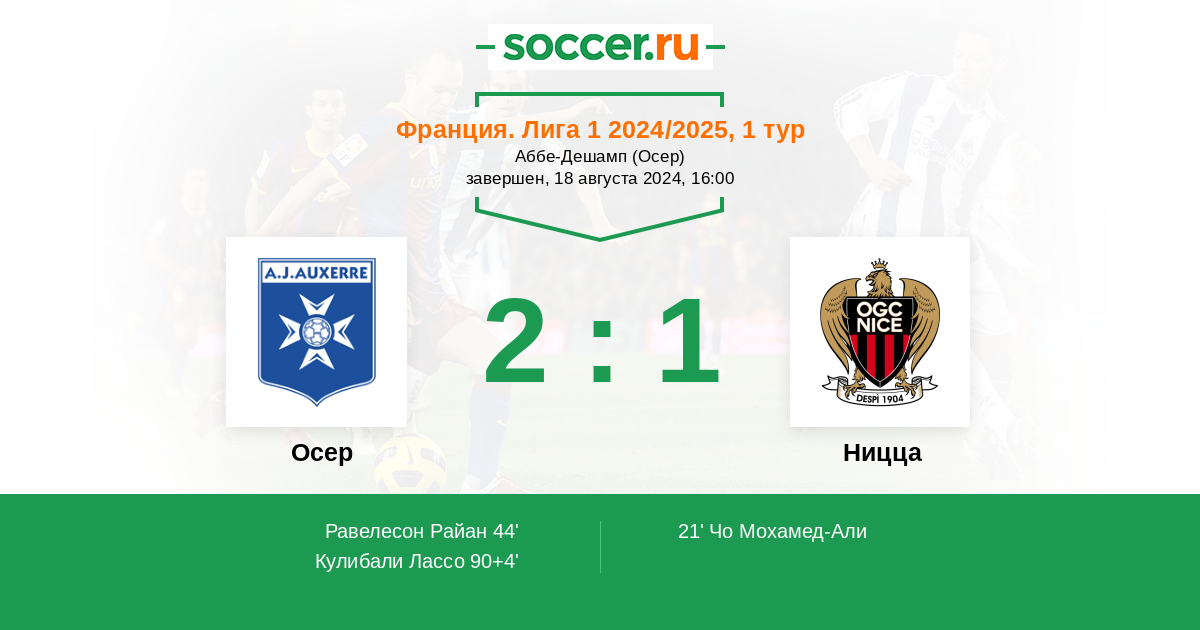 Франция. Лига 1 23.08.2025 Ницца Логотип футбольный клуб Ницца 3:1 Логотип футбольный клуб Осер Осер