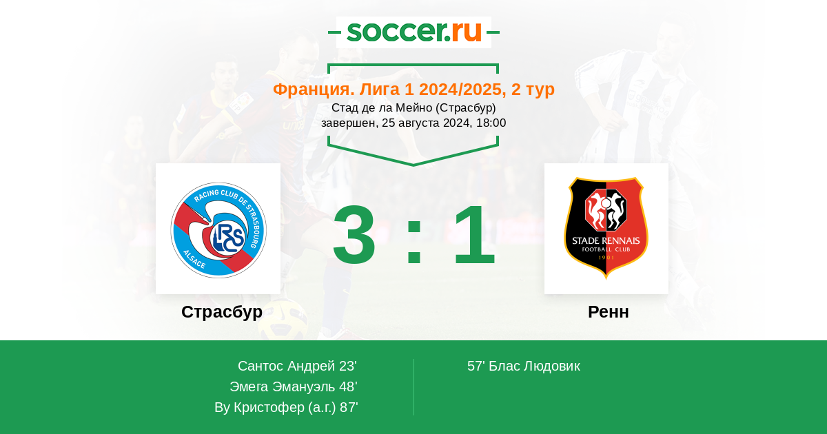 Франция. Лига 1 31.03.2024 Страсбур Логотип футбольный клуб Страсбур 2:0 Логотип футбольный клуб Ренн Ренн