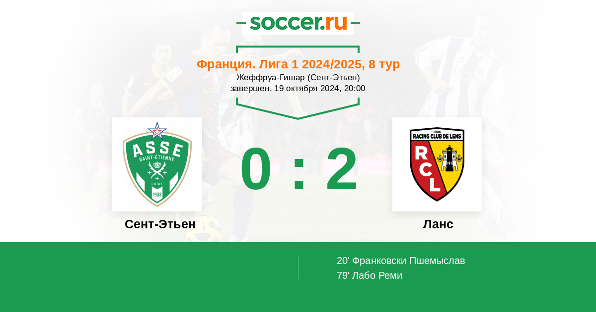 Франция. Лига 1 03.10.2020 Ланс Логотип футбольный клуб Ланс 2:0 Логотип футбольный клуб Сент-Этьен Сент-Этьен