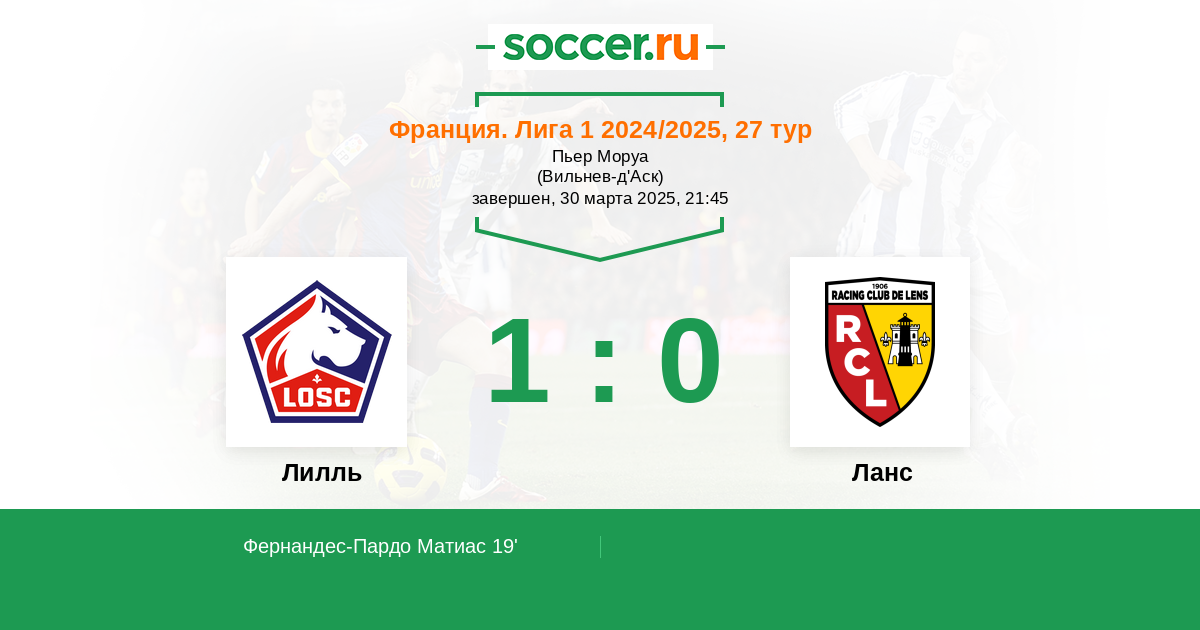 Франция. Лига 1 26.10.2024 Ланс Логотип футбольный клуб Ланс 0:2 Логотип футбольный клуб Лилль Лилль