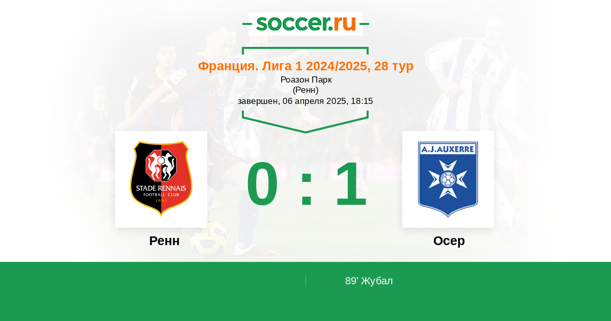 Франция. Лига 1 02.04.2011 Ренн Логотип футбольный клуб Ренн 0:0 Логотип футбольный клуб Осер Осер