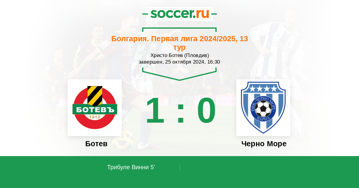 Болгария. Первая лига 26.09.2023 Черно Море Логотип футбольный клуб Черно Море (Варна) 1:0 Логотип футбольный клуб Ботев (Пловдив) Ботев