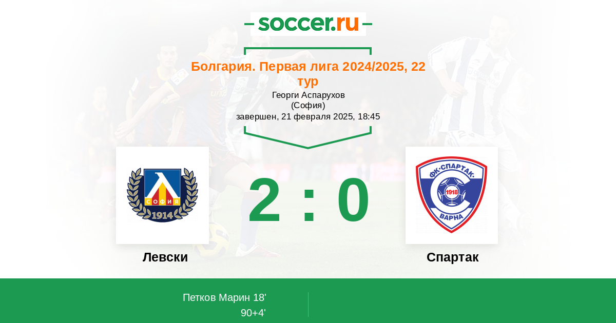 Болгария. Первая лига 16.07.2022 Левски Логотип футбольный клуб Левски (София) 5:0 Логотип футбольный клуб Спартак (Варна) Спартак