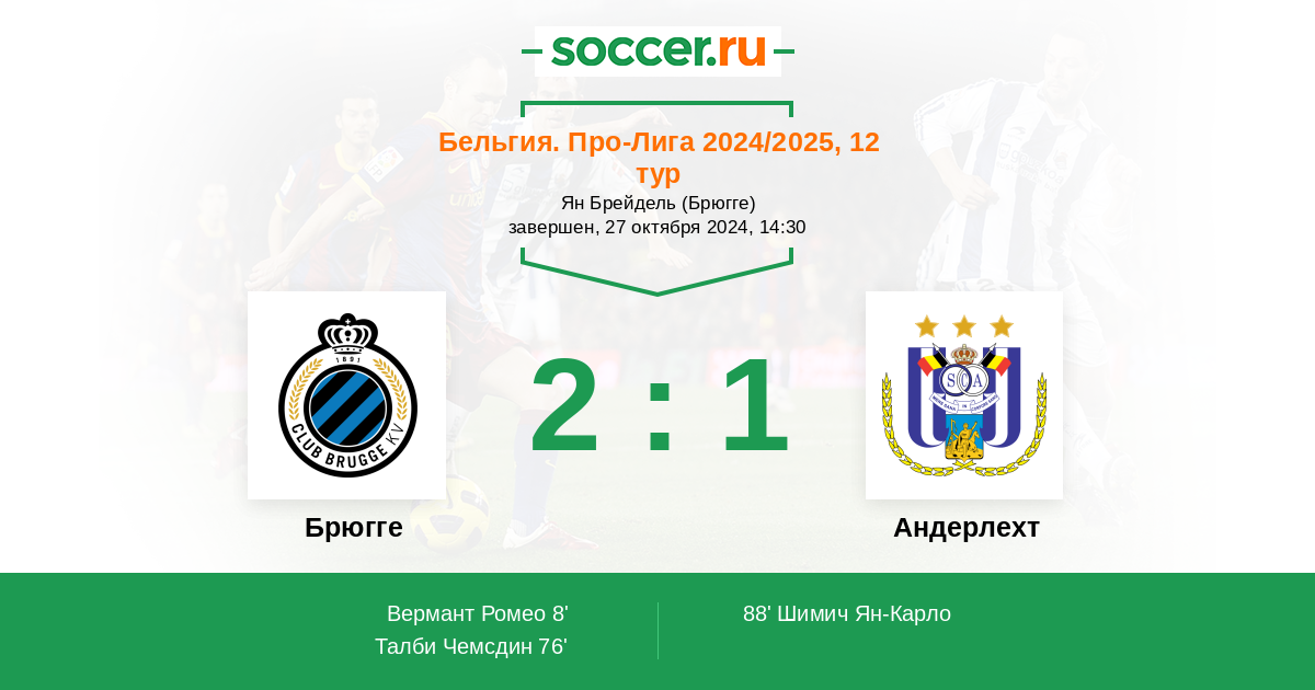 Бельгия. Про-Лига 25.02.2024 Брюгге Логотип футбольный клуб Брюгге 1:2 Логотип футбольный клуб Андерлехт (Брюссель) Андерлехт