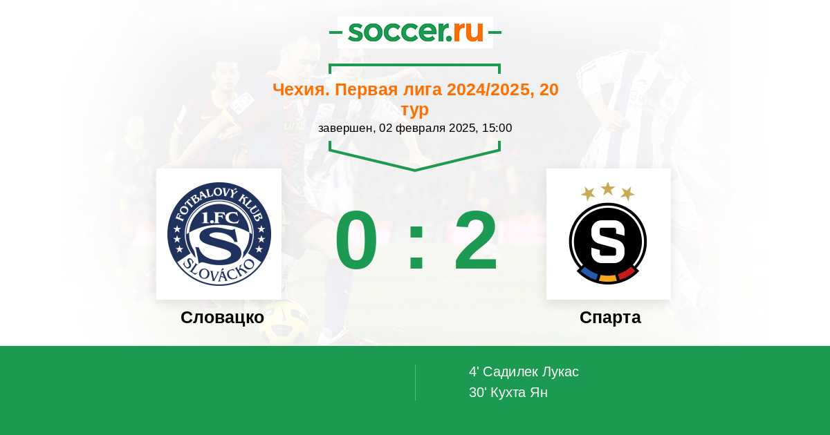 Чехия. Первая Лига 25.02.2024 Словацко Логотип футбольный клуб Словацко (Угерске-Градиште) 1:3 Логотип футбольный клуб Спарта (Прага) Спарта