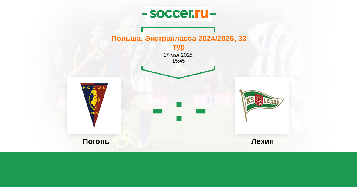 Польша. Экстракласса 12.05.2018 Погонь Логотип футбольный клуб Погонь (Щецин) 1:1 Логотип футбольный клуб Лехия (Гданьск) Лехия