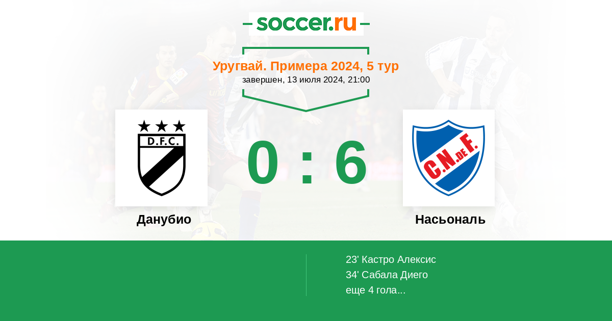 Уругвай. Примера A 09.04.2023 Данубио Логотип футбольный клуб Данубио (Монтевидео) 0:0 Логотип футбольный клуб Насьональ (Монтевидео) Насьональ