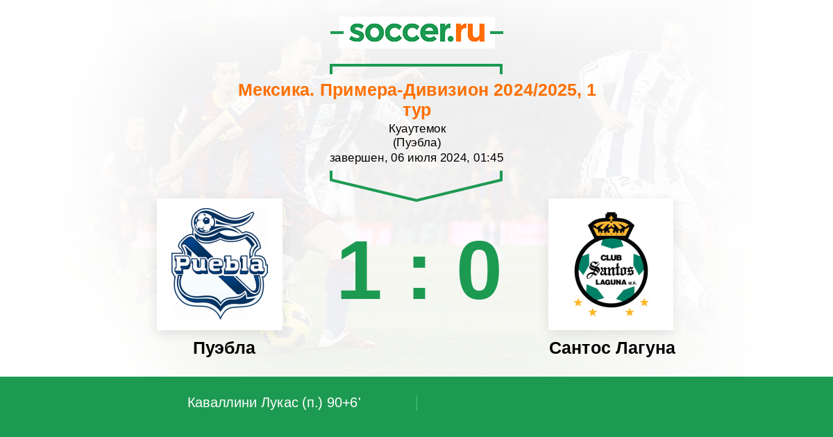 Мексика. Примера-Дивизион 26.07.2025 Пуэбла Логотип футбольный клуб Пуэбла (Пуэбла-де-Сарагоса) 1:0 Логотип футбольный клуб Сантос Лагуна (Торреон) Сантос Лагуна