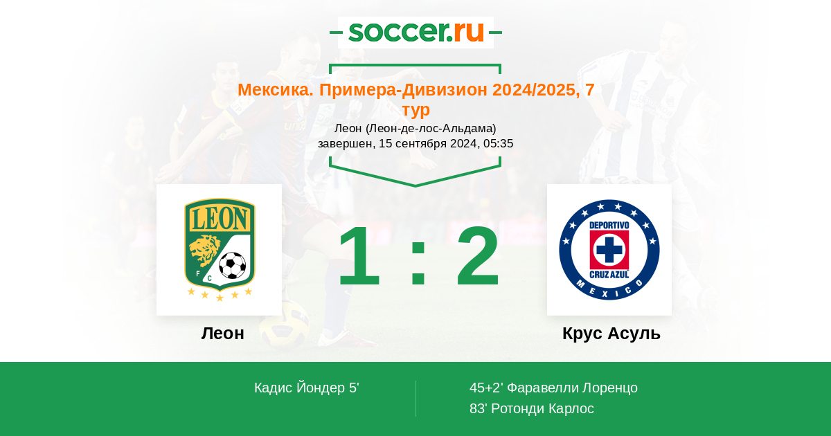 Мексика. Примера-Дивизион 22.02.2024 Леон Логотип футбольный клуб Леон 2:3 Логотип футбольный клуб Крус Асуль (Мехико) Крус Асуль