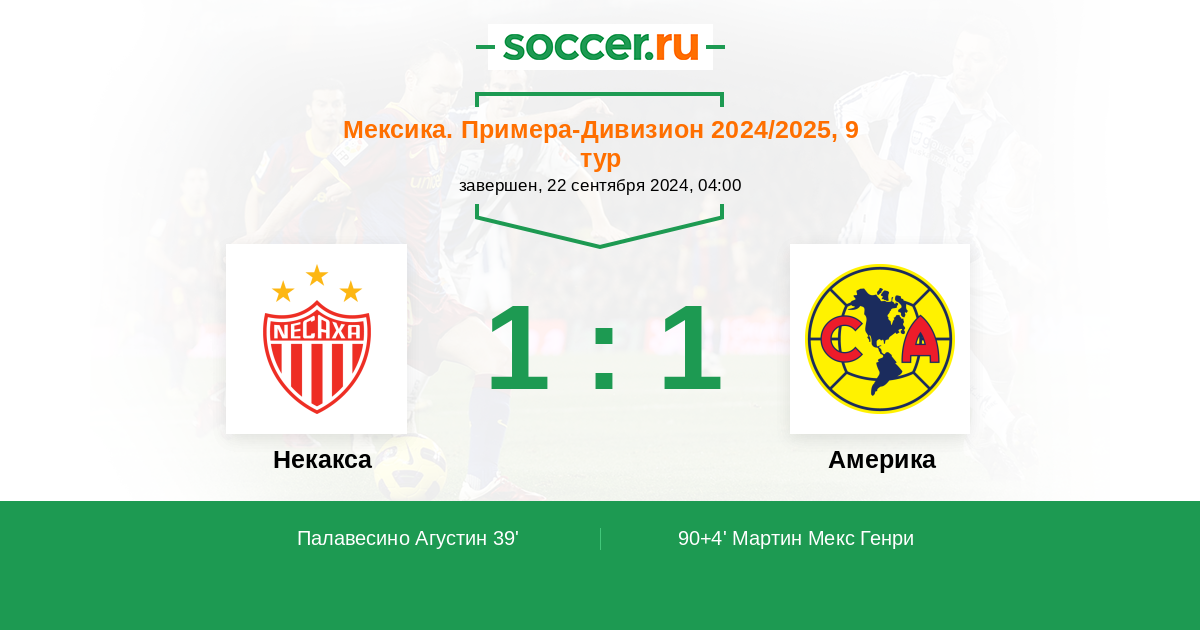 Мексика. Примера-Дивизион 21.09.2016 Некакса Логотип футбольный клуб Некакса (Агуаскальентес) 1:1 Логотип футбольный клуб Америка (Мехико) Америка